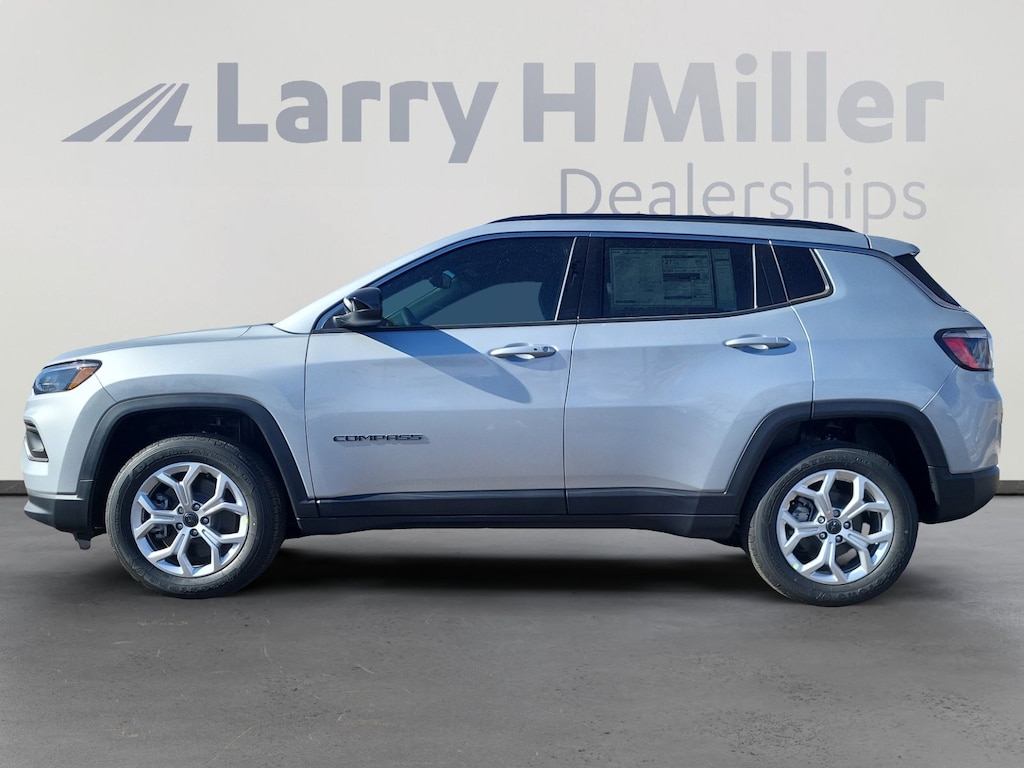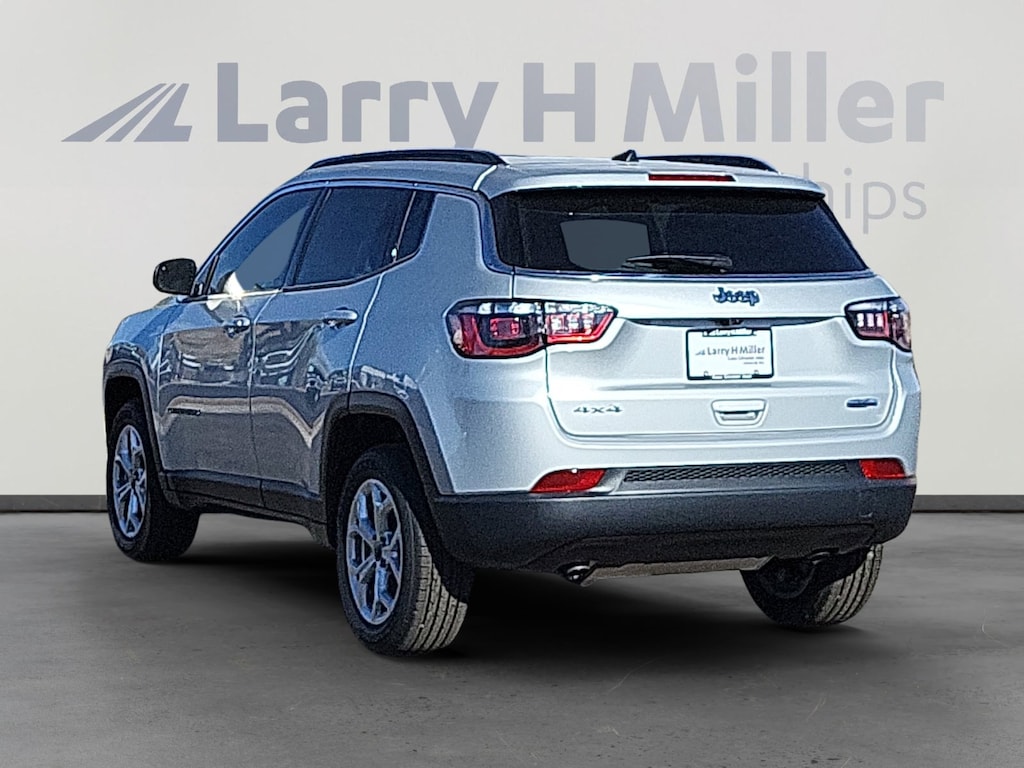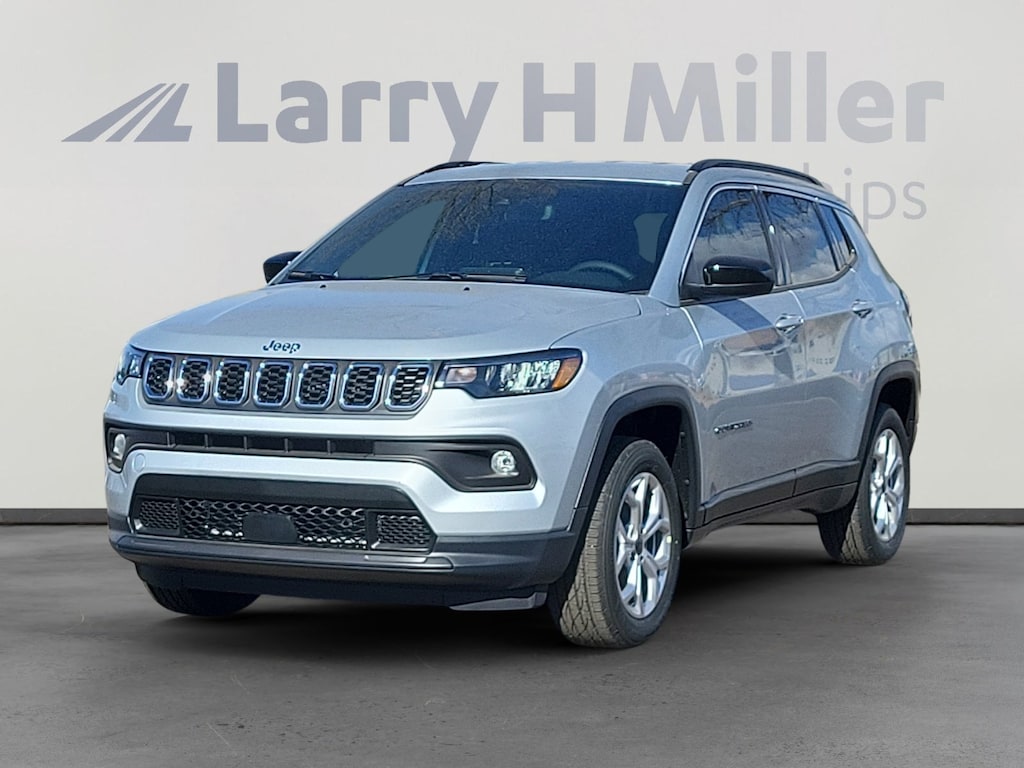 Silver Zynith Metallic Clearcoat 2025 Jeep Compass Latitude 4WD 8-Speed Automatic 2.0L I4 DOHC 4WD, 3.73 Final Drive Ratio, 4-Wheel Disc Brakes, 6 Speakers, ABS brakes, Air Conditioning, Alloy wheels, AM/FM radio: SiriusXM, Apple CarPlay/Android Auto, Auto High-beam Headlights, Brake assist, Bumpers: body-color, Compass, Delay-off headlights, Driver door bin, Driver vanity mirror, Dual front impact airbags, Dual front side impact airbags, Electronic Stability Control, Emergency communication system: Jeep Connect, Four wheel independent suspension, Front anti-roll bar, Front Bucket Seats, Front Center Armrest w/Storage, Front fog lights, Front reading lights, Fully automatic headlights, Heated door mirrors, Heated front seats, Heated steering wheel, Illuminated entry, Knee airbag, Leather Shift Knob, Leather steering wheel, Low tire pressure warning, Occupant sensing airbag, Outside temperature display, Overhead airbag, Overhead console, Panic alarm, ParkView Rear Back-Up Camera, Passenger door bin, Passenger vanity mirror, Power door mirrors, Power steering, Power windows, Premium audio system: UConnect 5, Premium Cloth/Vinyl Bucket Seats, Quick Order Package 29J, Radio: Uconnect 5 w/8.4 Display, Rear anti-roll bar, Rear seat center armrest, Rear window defroster, Rear window wiper, Remote keyless entry, Security system, Speed control, Split folding rear seat, Spoiler, Steering wheel mounted audio controls, Tachometer, Telescoping steering wheel, Tilt steering wheel, Traction control, Trip computer, Variably intermittent wipers, Wheels: 17 x 7 Aluminum (DISC), 4WD.