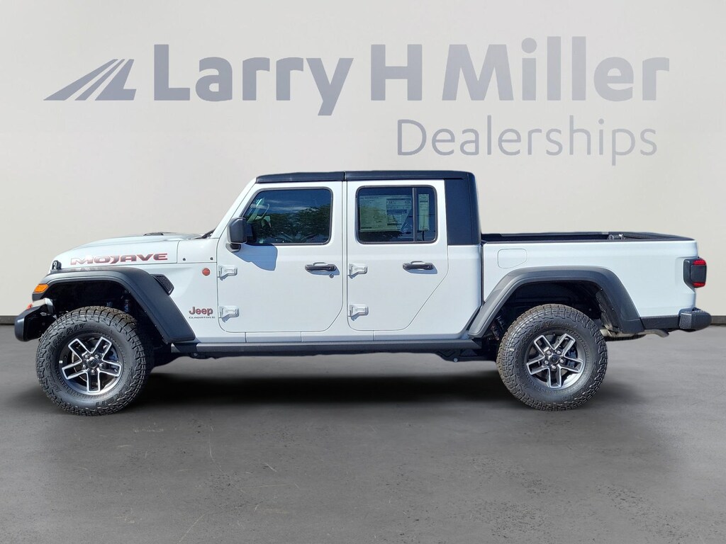 Bright White Clearcoat 2025 Jeep Gladiator Mojave 4WD 8-Speed Automatic 3.6L V6 24V VVT 12.3 Touchscreen Display, 4-Wheel Disc Brakes, 4.10 Rear Axle Ratio, 4G LTE Wi-Fi Hot Spot, 8 Speakers, 97 MPH Vehicle Max Speed Calibration, ABS brakes, Air Conditioning, Alexa Built-In, Alloy wheels, AM/FM radio: SiriusXM, Apple CarPlay, Apple CarPlay/Android Auto, Automatic temperature control, Black 3-Piece Hard Top, Brake assist, Compass, Connectivity - US/Canada, Convenience Group, Delay-off headlights, Driver door bin, Driver vanity mirror, Dual front impact airbags, Dual front side impact airbags, Electronic Stability Control, Emergency communication system: Jeep Connect, Freedom Panel Storage Bag, Front anti-roll bar, Front Bucket Seats, Front Center Armrest w/Storage, Front dual zone A/C, Front fog lights, Front reading lights, Fully automatic headlights, Google Android Auto, Heated door mirrors, Heated Front Seats, Heated Steering Wheel, Heavy Duty Suspension w/Gas Shocks, Illuminated entry, Integrated roll-over protection, Low tire pressure warning, MOPAR All-Weather Slush Mats, MOPAR Spray In Bedliner, Occupant sensing airbag, Outside temperature display, Overhead airbag, Panic alarm, Passenger door bin, Passenger vanity mirror, Power door mirrors, Power steering, Power windows, Premium Cloth Seats w/Sport Bolsters, Quick Order Package 24D Mojave, Radio data system, Radio: Uconnect 5 w/12.3 Display, Rear anti-roll bar, Rear reading lights, Rear Sliding Window, Rear Window Defroster, Remote keyless entry, Remote Start System, Security system, SiriusXM Radio Service, SiriusXM w/360L, Speed control, Split folding rear seat, Steering wheel mounted audio controls, Tachometer, Telescoping steering wheel, Tilt steering wheel, Traction control, Trip computer, Universal Garage Door Opener, USB Host Flip, Variably intermittent wipers, Voltmeter, Wheels: 17 x 7.5 Dark Gray Painted. Price includes the following incentives but does not include dealer added accessories.: $5500 - 2025 National Bonus Cash . Exp. 11/03/2025 Price includes dealer added accessories.
