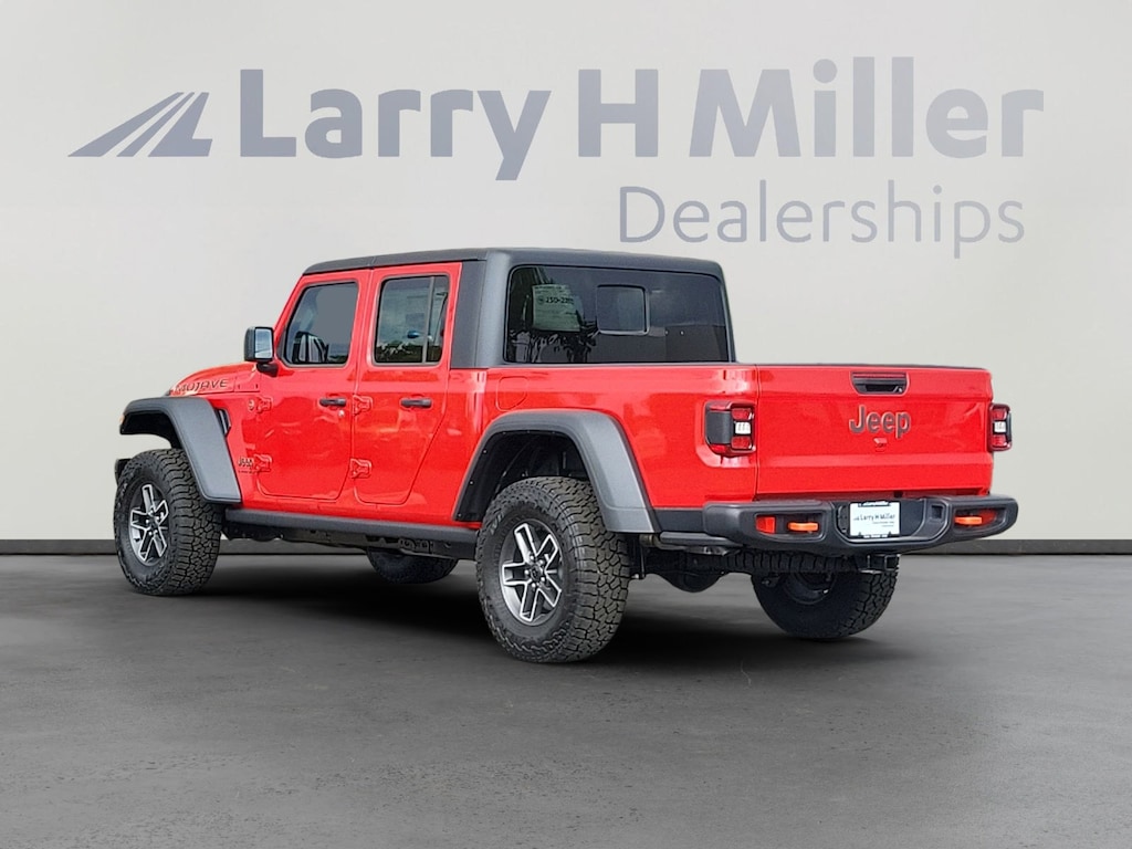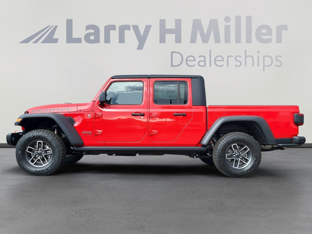 Firecracker Red Clearcoat 2025 Jeep Gladiator Mojave 4WD 8-Speed Automatic 3.6L V6 24V VVT 12.3 Touchscreen Display, 4-Wheel Disc Brakes, 4.10 Rear Axle Ratio, 4G LTE Wi-Fi Hot Spot, 8 Speakers, 97 MPH Vehicle Max Speed Calibration, ABS brakes, Air Conditioning, Alexa Built-In, Alloy wheels, AM/FM radio: SiriusXM, Apple CarPlay, Apple CarPlay/Android Auto, Auto-Dimming Rear-View Mirror, Automatic temperature control, Black 3-Piece Hard Top, Bluetooth Wireless Speaker, Brake assist, Compass, Connected Travel & Traffic Services, Connectivity - US/Canada, Convenience Group, Delay-off headlights, Driver door bin, Driver vanity mirror, Dual front impact airbags, Dual front side impact airbags, Electronic Stability Control, Emergency communication system: Jeep Connect, Freedom Panel Storage Bag, Front anti-roll bar, Front Bucket Seats, Front Center Armrest w/Storage, Front dual zone A/C, Front fog lights, Front License Plate Bracket, Front reading lights, Fully automatic headlights, Google Android Auto, GPS Antenna Input, GPS Navigation, HD Radio, Heated door mirrors, Heated Front Seats, Heated Steering Wheel, Heavy Duty Suspension w/Gas Shocks, Illuminated entry, Integrated Off-Road Camera, Integrated roll-over protection, Integrated Voice Command w/Bluetooth, Low tire pressure warning, MOPAR All-Weather Slush Mats, MOPAR Spray In Bedliner, Occupant sensing airbag, Outside temperature display, Overhead airbag, Panic alarm, Passenger door bin, Passenger vanity mirror, Power door mirrors, Power steering, Power windows, Premium Cloth Seats w/Sport Bolsters, Quick Order Package 24D Mojave, Radio data system, Radio: Uconnect 5 Nav w/12.3 Display, Radio: Uconnect 5 w/12.3 Display, Rear anti-roll bar, Rear reading lights, Rear Sliding Window, Rear Window Defroster, Remote keyless entry, Remote Start System, Security system, SiriusXM Radio Service, SiriusXM w/360L, Speed control, Split folding rear seat, Steel Bumper Group, Steel Front Bumper, Steel Rear Bumper, Steering wheel mounted audio controls, Tachometer, Technology Group, Telescoping steering wheel, Tilt steering wheel, Traction control, Trip computer, Universal Garage Door Opener, USB Host Flip, Variably intermittent wipers, Voltmeter, Wheels: 17 x 7.5 Dark Gray Painted. Price includes the following incentives but does not include dealer added accessories.: $2000 - 2025 National Overaged Select Inventory Bonus Cash. Exp. 11/03/2025 $5500 - 2025 National Bonus Cash . Exp. 11/03/2025 Price includes dealer added accessories.