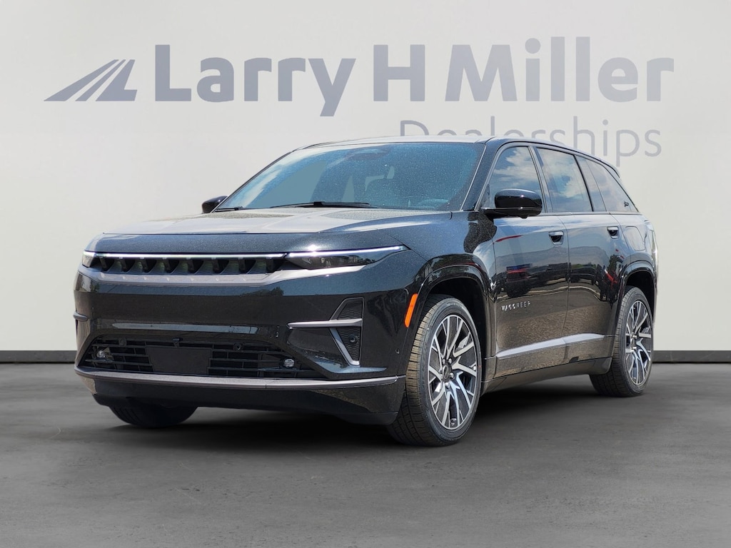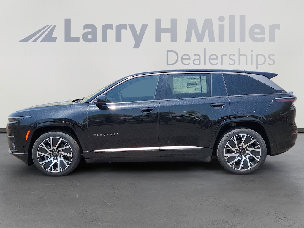 Diamond Black Crystal Pearlcoat 2025 Jeep Wagoneer S Limited 4WD 1-Speed Automatic Electric Motor 10 Speakers, 4-Wheel Disc Brakes, ABS brakes, Air Conditioning, Alloy wheels, AM/FM radio: SiriusXM with 360L, Apple CarPlay/Android Auto, Audio memory, Auto High-beam Headlights, Auto-dimming door mirrors, Auto-dimming Rear-View mirror, Automatic temperature control, Brake assist, Bumpers: body-color, Compass, Dark Appearance Package, Dark Daylight Opening Upper, Delay-off headlights, Driver door bin, Driver vanity mirror, Dual front impact airbags, Dual front side impact airbags, Electronic Stability Control, Emergency communication system: Jeep Connect, Four wheel independent suspension, Front anti-roll bar, Front Bucket Seats, Front Center Armrest w/Storage, Front dual zone A/C, Front fog lights, Front reading lights, Fully automatic headlights, Garage door transmitter, Heated door mirrors, Heated front seats, Heated steering wheel, Heavy Duty Suspension, Illuminated entry, Knee airbag, Low tire pressure warning, Memory seat, Navigation System, Neo Ultra Lux II Seats, Occupant sensing airbag, Outside temperature display, Overhead airbag, Panic alarm, ParkView Rear Back-Up Camera, Passenger door bin, Passenger vanity mirror, Power door mirrors, Power driver seat, Power Liftgate, Power moonroof, Power passenger seat, Power steering, Power windows, Premium audio system: UConnect 5, Quick Order Package 25D, Radio data system, Radio: Uconnect 5 Nav w/12.3 Display, Rain sensing wipers, Rear air conditioning, Rear anti-roll bar, Rear dual zone A/C, Rear reading lights, Rear seat center armrest, Rear side impact airbag, Rear window defroster, Rear window wiper, Remote keyless entry, Security system, Speed control, Speed-sensing steering, Speed-Sensitive Wipers, Split folding rear seat, Spoiler, Steering wheel mounted audio controls, Telescoping steering wheel, Tilt steering wheel, Titanium Exterior Accents, Titanium Rear Fascia Applique, Titanium Upper Grille Applique, Traction control, Trip computer, Turn signal indicator mirrors, Two Tone Paint Group, Variably intermittent wipers, Wheels: 20 x 8.5 Painted Diamond Aluminum Design 1.