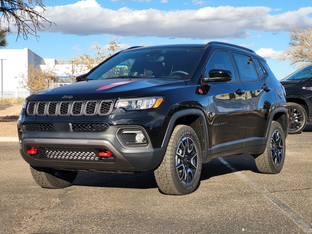 New Price! diamond black crystal pearlcoat 2026 Jeep Compass Trailhawk 4WD 8-Speed Automatic 2.0L I4 DOHC 4WD, 10.1 Touchscreen Display, 4 Pin Wiring Harness, 4-Wheel Disc Brakes, 4.398 Final Drive Ratio, 4G LTE Wi-Fi Hot Spot, 6 Speakers, ABS brakes, Active Driving Assist System, Air Conditioning, Alexa Built-In, Alloy wheels, AM/FM radio: SiriusXM, Auto High-beam Headlights, Auto-dimming Rear-View mirror, Automatic temperature control, Brake assist, Bumpers: body-color, Class III Receiver Hitch, Cluster 10.25 TFT Color Display, Compass, Connected Travel and Traffic Services, Delay-off headlights, Driver Assist Group I, Driver door bin, Driver vanity mirror, Dual front impact airbags, Dual front side impact airbags, Electronic Stability Control, Emergency communication system: SiriusXM Guardian, Four wheel independent suspension, Front anti-roll bar, Front Bucket Seats, Front Center Armrest w/Storage, Front dual zone A/C, Front fog lights, Front reading lights, Fully automatic headlights, Global Telematics Box Module, GPS Navigation, HD Radio, Heated door mirrors, Heated front seats, Heated steering wheel, Illuminated entry, Integrated Voice Command with Bluetooth, Knee airbag, Leather Shift Knob, Leather steering wheel, Low tire pressure warning, Occupant sensing airbag, Outside temperature display, Overhead airbag, Overhead console, Panic alarm, ParkView Rear Back-Up Camera, Passenger door bin, Passenger vanity mirror, Power door mirrors, Power driver seat, Power Front/Fixed Rear Full Sunroof, Power Liftgate, Power steering, Power windows, Premium Alpine Speaker System, Premium audio system: UConnect 5, Premium Cloth/Leather Trim Bucket Seats, Quick Order Package 29E, Radio: Uconnect 5 with 10.1 Display, Rain sensing wipers, Rear anti-roll bar, Rear seat center armrest, Rear window defroster, Rear window wiper, Remote keyless entry, Security system, SiriusXM Guardian - Included Trail (B), SiriusXM Radio Service, SiriusXM with 360L, Speed control, Split folding rear seat, Spoiler, Steering wheel mounted audio controls, Sun, Sound and Navigation Group, Tachometer, Telescoping steering wheel, Tilt steering wheel, Traction control, Traffic Sign Recognition, Trailer Tow Group, Trip computer, Turn signal indicator mirrors, Variably intermittent wipers, Wheels: 17 x 6.5 Painted Black Aluminum, Wireless Charging Pad, 4WD.