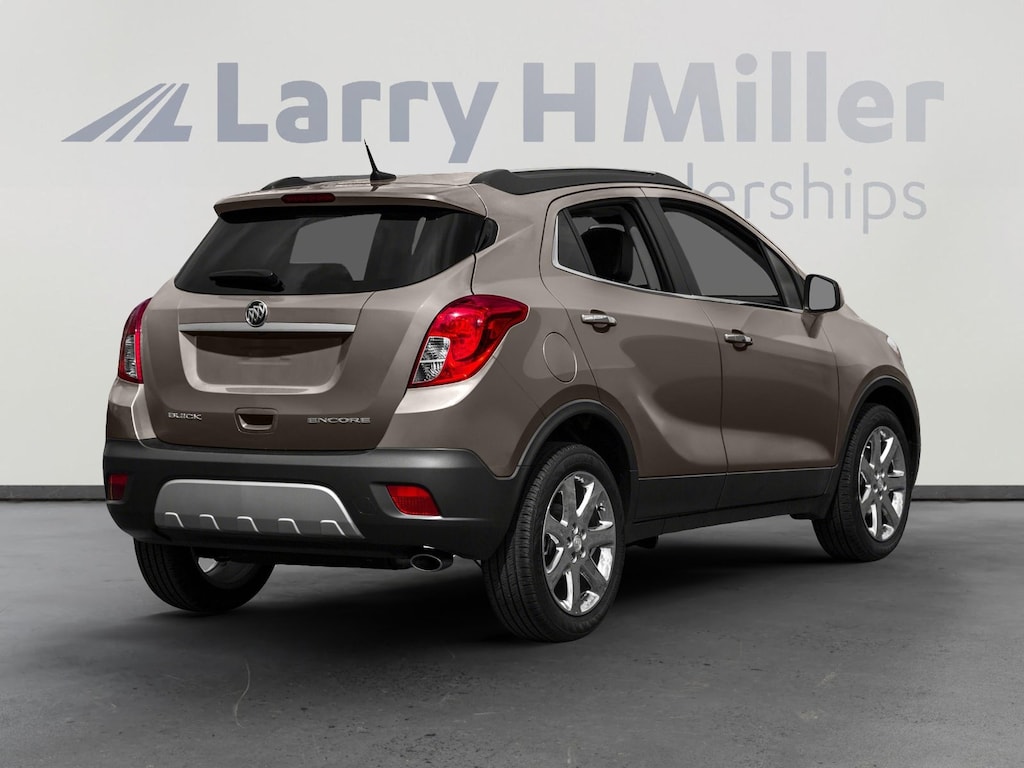 This 2015 Cocoa Silver Metallic Buick Encore Premium AWD is well equipped and includes these features and benefits: Preferred Equipment Group 1SN (Bose Premium 7-Speaker Audio System Feature, Carpeted Rear Cargo Mat, Forward Collision Alert, Lane Departure Warning System, Rainsense Intermittent Front Wipers, Rear Cargo Net, and Ultrasonic Front & Rear Park Assist), 3.53 Final Drive Axle Ratio, 4-Wheel Disc Brakes, 6-Way Power Driver Seat Adjuster, 6-Way Power Front Passenger Seat Adjuster, 7 Speakers, ABS brakes, Air Conditioning, Alloy wheels, AM/FM radio: SiriusXM, Auto-dimming Rear-View mirror, Automatic temperature control, Brake assist, Bumpers: body-color, CD player, Compass, Delay-off headlights, Driver door bin, Driver vanity mirror, Driver's Seat Mounted Armrest, Dual front impact airbags, Dual front side impact airbags, Electronic Stability Control, Emergency communication system: OnStar Directions & Connections, Exterior Parking Camera Rear, Front anti-roll bar, Front Bucket Seats, Front dual zone A/C, Front fog lights, Front reading lights, Front wheel independent suspension, Fully automatic headlights, Heated door mirrors, Heated Driver & Front Passenger Seats, Heated front seats, Heated steering wheel, Illuminated entry, Knee airbag, Leather steering wheel, Leather-Appointed Seat Trim, Low tire pressure warning, Memory seat, Occupant sensing airbag, Outside temperature display, Overhead airbag, Panic alarm, Passenger door bin, Passenger vanity mirror, Power door mirrors, Power driver seat, Power passenger seat, Power steering, Power Tilt-Sliding Moonroof, Power windows, Premium audio system: IntelliLink, Radio data system, Radio: AM/FM Audio System w/MP3 CD Player, Radio: AM/FM Audio System w/Nav/Single CD Player, Rain sensing wipers, Rear seat center armrest, Rear side impact airbag, Rear window defroster, Rear window wiper, Remote keyless entry, Ride & Handling Suspension, Roof Rack Cross Rails (Set of 2) (LPO), Roof rack: rails only, Security system, SiriusXM Satellite Radio, Speed control, Speed-sensing steering, Split folding rear seat, Spoiler, Steering wheel mounted audio controls, Tachometer, Telescoping steering wheel, Tilt steering wheel, Traction control, Trip computer, Turn signal indicator mirrors, Variably intermittent wipers, and Wheels: 18 5-Spoke Painted Cast Aluminum. Recent Arrival!