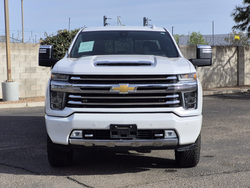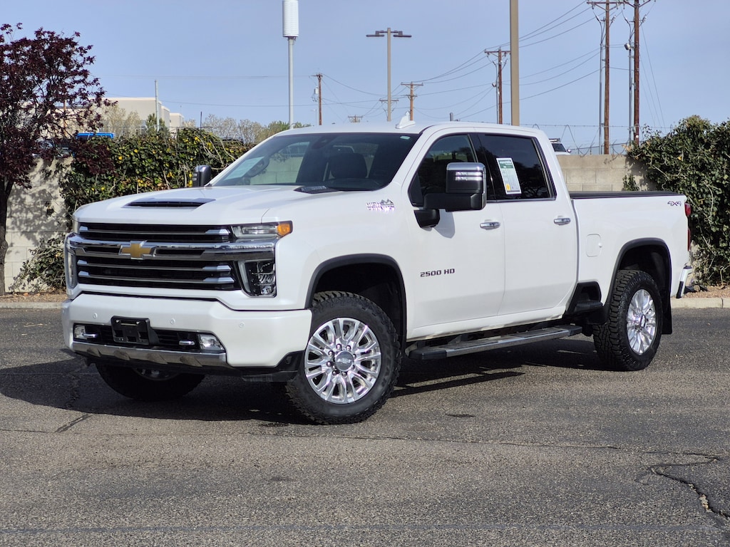 This One Owner 2020 Iridescent Pearl Tricoat Chevrolet Silverado 2500HD High Country 4WD is well equipped and includes these features and benefits: Preferred Equipment Group 3LZ (10-Way Power Driver Seat Adjuster w/Lumbar, 10-Way Power Passenger Seat Adjuster w/Lumbar, 12-Volt Rear Auxiliary Power Outlet, 120-Volt Bed Mounted Power Outlet, 120-Volt Instrument Panel Power Outlet, 170 Amp Alternator, 4G LTE Wi-Fi Hotspot Capable, 6 Rectangular Chromed Tubular Assist Steps, 8 Diagonal Multicolor Digital Display DIC, Advanced Trailering System, Auto-Dimming Inside Rear-View Mirror, Black Chevytec Spray-On Bedliner w/Chevrolet Logo, Bluetooth® For Phone, Chevrolet Connected Access Capable, Chrome Front Grille, Chrome Mirror Caps, Chrome Recovery Hooks, Carpeting Floor Covering, Compass, Deep-Tinted Glass, Driver Memory, Dual Charge-Only USB Ports (2nd Row), Electric Rear-Window Defogger, Electrical Lock Control Steering Column, Electronic Cruise Control w/Set & Resume Speed, Floor-Mounted Center Console, Front Carpeted Floor Mats, Front LED Fog Lamps, HD Radio, HD Rear Vision Camera, Heated & Auto-Dim Pwr Vertical Trailering Mirrors, Heated 2nd Row Outboard Seats, Heated Driver & Front Outboard Passenger Seating, Heated Steering Wheel, Hitch Guidance w/Hitch View, Integrated Trailer Brake Controller, Keyless Open & Start, Lane Change Alert w/Side Blind Zone Alert, Leather-Wrapped Steering Wheel, LED Cargo Area Lighting, Manual Tilt & Telescoping Steering Column, OnStar & Chevrolet Connected Services Capable, Polished Exhaust Tip, Power Door Locks, Power Front Windows w/Driver Express Up/Down, Power Front Windows w/Passenger Express Up/Down, Power Rear Windows w/Express Down, Power Sliding Rear Window w/Defogger, Rear Carpeted Floor Mats, Rear Cross Traffic Alert, Rear Wheelhouse Liners, Remote Vehicle Starter System, SiriusXM w/360L, Steering Wheel Audio Controls, Ultrasonic Front & Rear Park Assist, Unauthorized Entry Theft-Deterrent System, Universal Home Remote, Ventilated Driver & Front Passenger Seats, and Wireless Charging), Safety Package II (Automatic Emergency Braking, Following Distance Indicator, Forward Collision Alert, IntelliBeam Automatic High Beam On/Off, Lane Departure Warning System, and Safety Alert Seat), Suspension Package, Technology Package (15 Diagonal Multicolor Head-Up Display, Bed View Camera, HD Surround Vision w/2 Trailer View Cam Provisions, and Rear Camera Mirror), Up-Level Rear Seat w/Storage Package, Z71 Off-Road Package (Hill Descent Control), 10-Speed Automatic, 4WD, Jet Black Leather, 220 Amp Alternator, 4-Wheel Disc Brakes, 5th Wheel & Gooseneck Trailer Wiring Provisions, 720 Cold-Cranking Amps Heavy-Duty Battery, 8 Speakers, ABS brakes, Air Conditioning, Alloy wheels, AM/FM radio: SiriusXM with 360L, Apple CarPlay/Android Auto, Auto-dimming door mirrors, Auto-dimming Rear-View mirror, Automatic temperature control, BOSE Premium 7-Speaker Sound System, Brake assist, Bumpers: body-color, Delay-off headlights, Driver door bin, Driver vanity mirror, Dual front impact airbags, Dual front side impact airbags, Electronic Stability Control, Engine Block Heater, Exhaust Brake, Front anti-roll bar, Front Bucket Seats, Front Bucket Seats w/Center Console, Front Center Armrest, Front dual zone A/C, Front fog lights, Front License Plate Kit, Front reading lights, Front wheel independent suspension, Fully automatic headlights, Garage door transmitter, Heated door mirrors, Heated front seats, Heated rear seats, Heated steering wheel, High Idle Switch, Illuminated entry, Low tire pressure warning, Memory seat, Navigation System, Occupant sensing airbag, Outside temperature display, Overhead airbag, Overhead console, Panic alarm, Passenger door bin, Passenger vanity mirror, Perforated Leather-Appointed Seat Trim, Power door mirrors, Power driver seat, Power passenger seat, Power steering, Power windows, Premium audio system: Chevrolet Infotainment 3 Premium, Radio: Chevrolet Infotainment 3 Premium System,