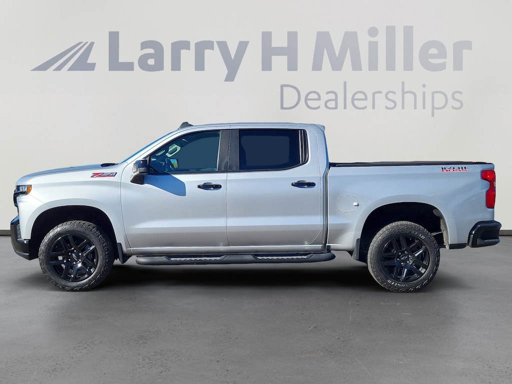 This 2021 Silver Ice Metallic Chevrolet Silverado 1500 LT Trail Boss 4WD is well equipped and includes these features and benefits: Bed Protection Package (Chevytec Spray-On Black Bedliner and Rear Wheelhouse Liners), Cloth Rear Seat w/Storage Package, Convenience Package II (120-Volt Bed Mounted Power Outlet, 120-Volt Instrument Panel Power Outlet, 2 USB Ports, HD Radio, HD Rear Vision Camera, Power Sliding Rear Window w/Rear Defogger, Premium Bose 7-Speaker Sound System, Radio: Chevrolet Infotainment 3 Plus System, SiriusXM w/360L, Universal Home Remote, and Wireless Phone Projection), Convenience Package w/Buckets Seats (10-Way Power Driver Seat w/Lumbar, Dual-Zone Automatic Climate Control, Floor Mounted Center Console, Heated Driver & Front Outboard Passenger Seats, Heated Steering Wheel, and Manual Tilt/Telescoping Steering Column), Dark Essentials Package (LPO) (Black Name Plates (LPO)), Leather Package (Leather-Appointed Front Seat Trim), Preferred Equipment Group 2LT (12-Volt Rear Auxiliary Power Outlet, 170 Amp Alternator, 2 USB Ports (First Row), 4.2 Diagonal Color Display Driver Info Center, 4G LTE Wi-Fi Hot Spot Capable, 6-Speaker Audio System, All-Weather Floor Liner (LPO) (AAK), Auto-Locking Rear Differential, Auxiliary External Transmission Oil Cooler, Bluetooth® For Phone, Chevrolet Connected Access Capable, Color-Keyed Carpeting Floor Covering, Compass, Deep-Tinted Glass, Dual Exhaust w/Polished Outlets, Electric Rear-Window Defogger, Electrical Lock Control Steering Column, Electronic Cruise Control, EZ Lift Power Lock & Release Tailgate, Front LED Fog Lamps, High Gloss Black Grille, High Gloss Black Mirror Caps, Keyless Open & Start, Leather Wrapped Steering Wheel, LED Cargo Area Lighting, LED Reflector Headlamps, OnStar & Chevrolet Connected Services Capable, Performance Red Recovery Hooks, Power Door Locks, Power Front Windows w/Driver Express Up/Down, Power Front Windows w/Passenger Express Down, Power Rear Windows w/Express Down, Rear Dual USB Charging-Only Ports, Rear Vision Camera, Remote Vehicle Starter System, SiriusXM Radio, Standard Tailgate, Steering Wheel Audio Controls, and Theft Deterrent System (Unauthorized Entry)), Suspension Package (Heavy-Duty Air Filter and Hill Descent Control), Trailering Package (Hitch Guidance), Up-Level Rear Seat w/Storage Package, 10-Speed Automatic, 4WD, Black Leather, 3.23 Rear Axle Ratio, 4-Wheel Disc Brakes, 6 Speakers, ABS brakes, Air Conditioning, Alloy wheels, AM/FM radio: SiriusXM, Apple CarPlay/Android Auto, Automatic temperature control, Black Tailgate CHEVROLET Lettering (LPO), Brake assist, Cloth Seat Trim, Delay-off headlights, Driver door bin, Driver vanity mirror, Dual front impact airbags, Dual front side impact airbags, Electronic Stability Control, Engine Block Heater, Front anti-roll bar, Front Bucket Seats, Front Center Armrest w/Storage, Front dual zone A/C, Front fog lights, Front License Plate Kit, Front reading lights, Front wheel independent suspension, Fully automatic headlights, Heated door mirrors, Heated front seats, Heated steering wheel, Illuminated entry, Integrated Trailer Brake Controller, Low tire pressure warning, Occupant sensing airbag, Off-Road Suspension w/2 Lift, Outside temperature display, Overhead airbag, Overhead console, Panic alarm, Passenger door bin, Passenger vanity mirror, Power door mirrors, Power driver seat, Power steering, Power windows, Premium audio system: Chevrolet Infotainment 3, Radio data system, Radio: Chevrolet Infotainment 3 System, Rear reading lights, Rear seat center armrest, Rear step bumper, Rear window defroster, Remote keyless entry, Security system, Speed control, Speed-sensing steering, Split folding rear seat, Steering wheel mounted audio controls, Tachometer, Telescoping steering wheel, Tilt steering wheel, Traction control, Trip computer, Variably intermittent wipers, Voltmeter, Wheels: 18 x 8.5 Black Painted Aluminum, and Wheels: 20 x 9 High Gloss Black Painted Alum. Recent Arrival