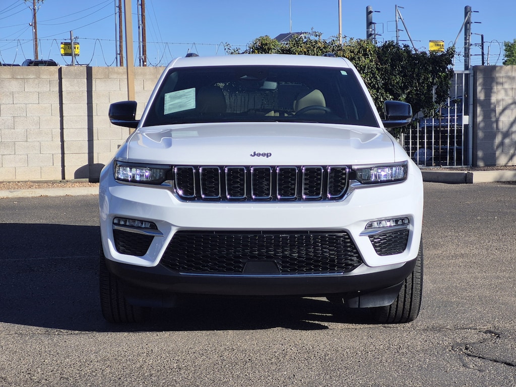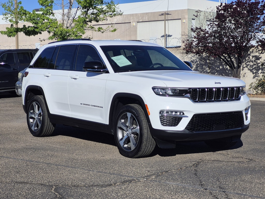 This 2023 Bright White Clearcoat Jeep Grand Cherokee Limited 4WD is well equipped and includes these features and benefits: Quick Order Package 23E, Trailer Tow Prep Group (B) (DISC) (220 Amp Alternator, Automatic Headlamp Levelling System, Heavy-Duty Engine Cooling, Rear Load Levelling Suspension, and Trailer Hitch Zoom), FCA US LLC Certified Pre-Owned Certified, 4WD, 3.45 Rear Axle Ratio, 4-Wheel Disc Brakes, 6 Speakers, ABS brakes, Active Noise Control System, Air Conditioning, Alloy wheels, AM/FM radio: SiriusXM with 360L, Anti-whiplash front head restraints, Audio memory, Auto High-beam Headlights, Automatic temperature control, Brake assist, Bumpers: body-color, Capri Leatherette Seats, Compass, Delay-off headlights, Driver door bin, Driver vanity mirror, Dual front impact airbags, Dual front side impact airbags, Electronic Stability Control, Emergency communication system, Four wheel independent suspension, Front anti-roll bar, Front Bucket Seats, Front Center Armrest w/Storage, Front dual zone A/C, Front fog lights, Front reading lights, Fully automatic headlights, Garage door transmitter, Heated door mirrors, Heated front seats, Heated rear seats, Heated steering wheel, Illuminated entry, Knee airbag, Low tire pressure warning, Memory seat, Molded In Color Black/Gloss Black Roof Rails, Navigation System, Normal Duty Suspension, Occupant sensing airbag, Outside temperature display, Overhead airbag, Overhead console, Panic alarm, ParkView Rear Back-Up Camera, Passenger door bin, Passenger vanity mirror, Power door mirrors, Power driver seat, Power Liftgate, Power passenger seat, Power steering, Power windows, Radio data system, Radio: Uconnect 5 Nav w/10.1 Display, Rear anti-roll bar, Rear reading lights, Rear window defroster, Rear window wiper, Remote keyless entry, Security system, Speed control, Speed-Sensitive Wipers, Split folding rear seat, Spoiler, Steering wheel mounted audio controls, Tachometer, Telescoping steering wheel, Tilt steering wheel, Traction control, Trip computer, Turn signal indicator mirrors, Variably intermittent wipers, Voltmeter, Wheels: 18 x 8 Fully Painted Aluminum, and Wheels: 20 x 8.5 Machined/Painted Aluminum. Recent Arrival!