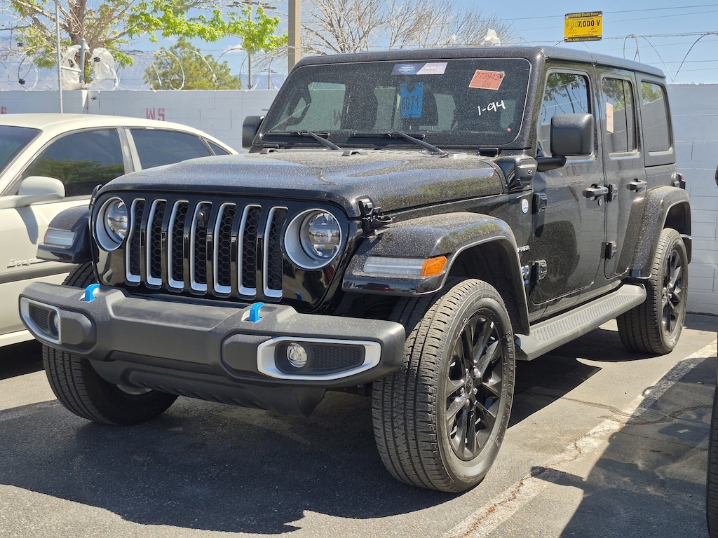 This 2023 Black Clearcoat Jeep Wrangler Sahara 4xe 4WD is well equipped and includes these features and benefits: Cold Weather Group (Heated Front Seats and Heated Steering Wheel), Quick Order Package 29P Sahara, Trailer Tow & Aux Switch Group (700 Amp Maintenance Free Battery and Auxiliary Switches), 2.0L I4 DOHC, 3.73 Rear Axle Ratio, 4-Wheel Disc Brakes, 9 Speakers, ABS brakes, Air Conditioning, Alloy wheels, AM/FM radio: SiriusXM, Anti-Spin Differential Rear Axle, Apple CarPlay/Android Auto, Auto-dimming Rear-View mirror, Automatic temperature control, Black 3-Piece Hard Top, Brake assist, Compass, Delay-off headlights, Driver door bin, Driver vanity mirror, Dual front impact airbags, Dual front side impact airbags, Electronic Stability Control, Emergency communication system: SiriusXM Guardian, Freedom Panel Storage Bag, Front anti-roll bar, Front Bucket Seats, Front Center Armrest w/Storage, Front dual zone A/C, Front fog lights, Front License Plate Bracket, Front reading lights, Fully automatic headlights, Garage door transmitter, Heated door mirrors, Illuminated entry, Integrated Off-Road Camera, Integrated roll-over protection, Leather Shift Knob, Low tire pressure warning, Navigation System, Occupant sensing airbag, Outside temperature display, Panic alarm, ParkView Rear Back-Up Camera, Passenger door bin, Passenger vanity mirror, Power door mirrors, Power steering, Power windows, Premium McKinley Trimmed Seats, Radio data system, Radio: Uconnect 4C Nav w/8.4 Display, Rear anti-roll bar, Rear reading lights, Rear seat center armrest, Rear Window Defroster, Rear Window Wiper/Washer, Remote keyless entry, Security system, Side Steps, Speed control, Split folding rear seat, Sport Suspension, Steering wheel mounted audio controls, Tachometer, Telescoping steering wheel, Tilt steering wheel, Traction control, Trip computer, Variably intermittent wipers, Voltmeter, and Wheels: 20 x 8 Fully Painted Aluminum. Recent Arrival!